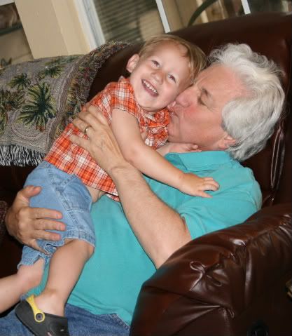 Two weekends ago, we spent a day with my parents, my kids call them Granny and Granddad.  Griffin loves to play with Granddad.  Phoenix wanted to try on Granny's reading glasses.
